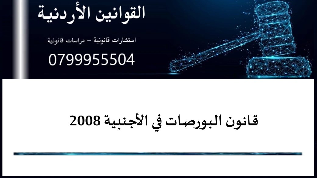 المادة (1) يسمى هذا القانون (قانون تنظيم التعامل في البورصات الأجنبية لسنة 2008) ويعمل به من تاريخ نشره في الجريدة الرسمية.