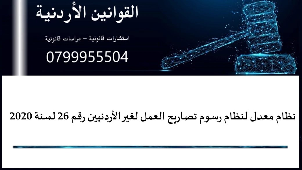 نظام معدل لنظام رسوم تصاريح العمل لغير الأردنيين رقم 26 لسنة 2020